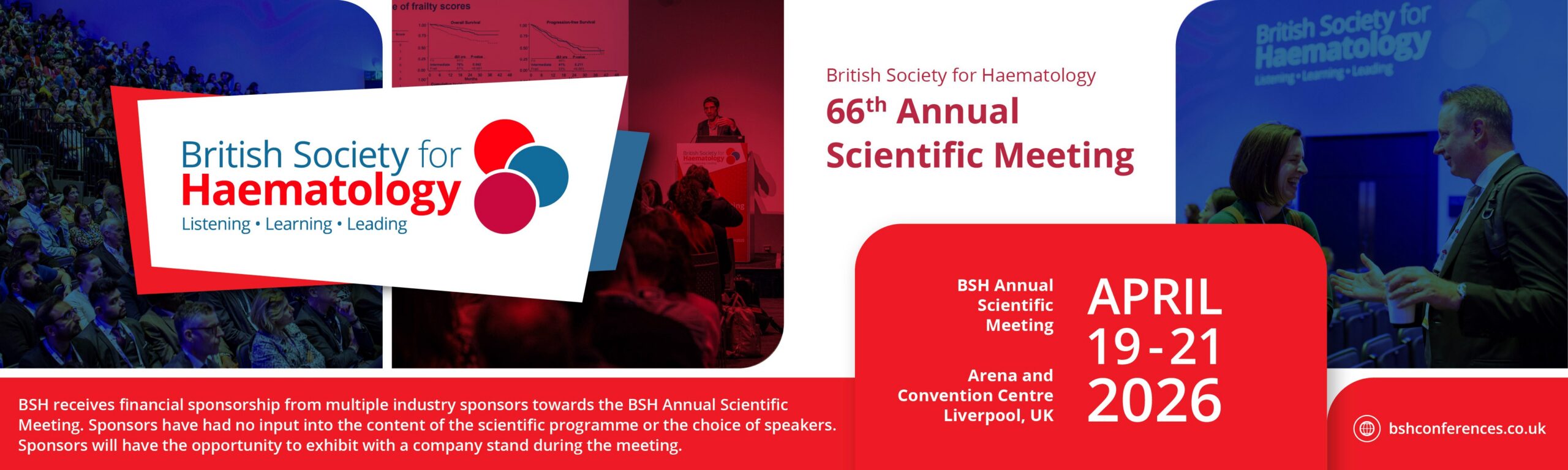 The 66th Annual Scientific Meeting of the British Society for Haematology will take place at ACC Liverpool from Sunday 19 April to Tuesday 21 April 2026. Click on the image below for more information.