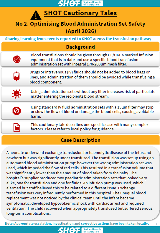 Cautionary Tale No 2 Optimising Blood Administration Set Safety (April 2026)